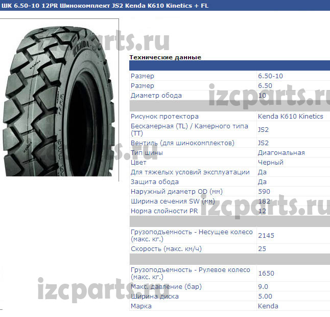Шина 6,50x10 kenda k610