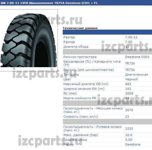 Шина 7,00х12 deestone